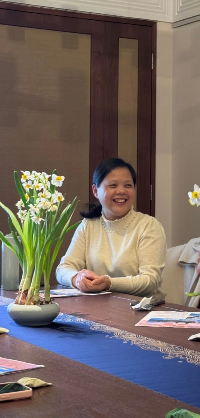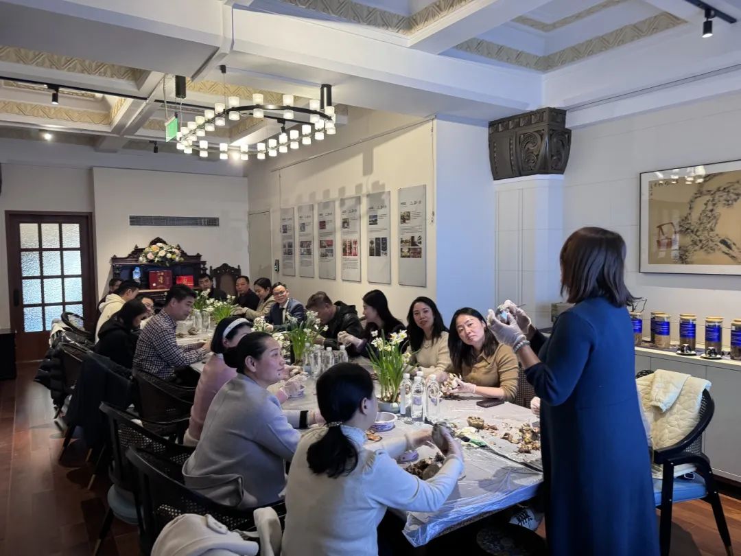 各位秘书长们学着样子,去除杂皮、开盖定位、剥苞修鳞、疏隙修叶,大家专注雕刻,分享讨论,在活动中各位秘书长拉近彼此的乡情,让整个房间充满“温度”。随着时间的推移,大家纷纷完成各具特色的作品,见证了水仙花从包着泥土的圆球到露出绿芽的形状,大家都十分期待开花的结果。