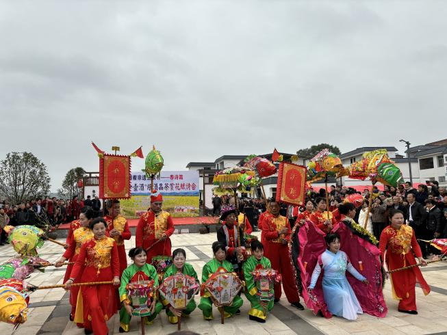 在固村镇“花间一壶酒”煨酒品茶赏花赋诗会上,大家兴致勃勃地观看了鲤鱼灯、茶篮灯等固村镇非遗民俗和文艺表演,近距离感受非遗文化的魅力。