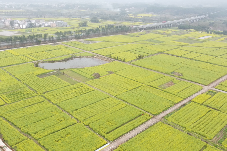 阳春三月,正是油菜花盛开之时,连片的金色油菜花海诉说着春天的浪漫。盛开的油菜花与田园、村庄、交相辉映,形成一幅美丽的山水田园画。