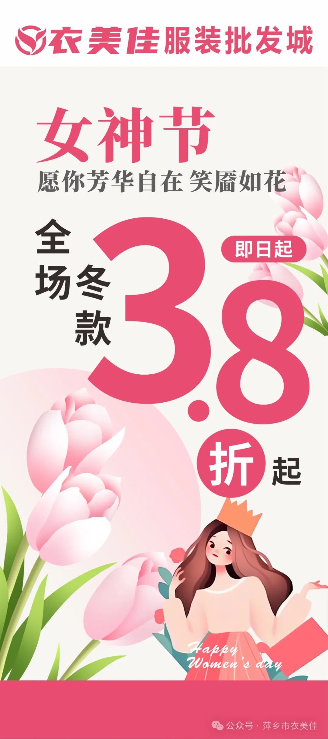 【萍乡衣美佳服装批发城】每周六为会员日,会员可享全场正价商品8.8折优惠!!