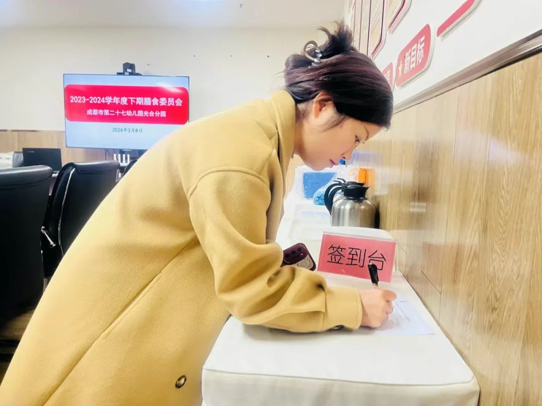 膳食委员们如约而至,有序签到。