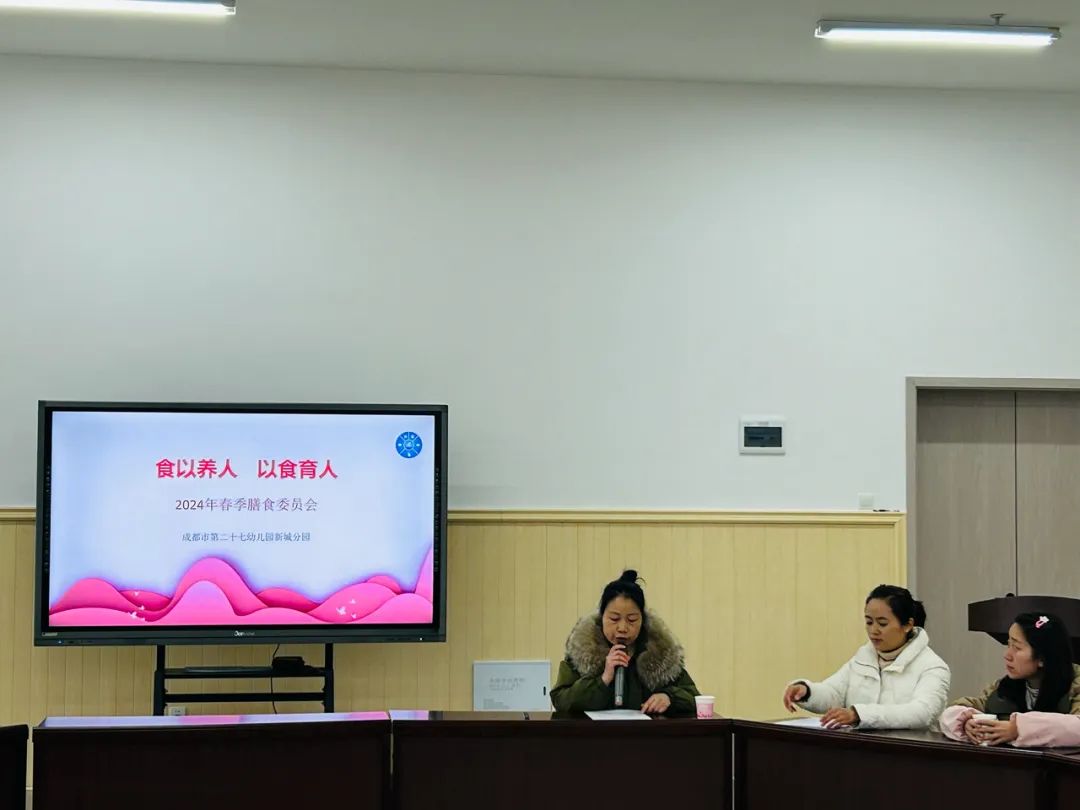 2024年3月8日,成都市第二十七幼儿园召开了2023--2024学年度下期膳食委员会会议。向家长全面展示幼儿园食品安全管理工作,充分发挥膳食委员会职能,做到家园共育、共享、共策,共同守护幼儿舌尖上的安全,保证幼儿健康成长。