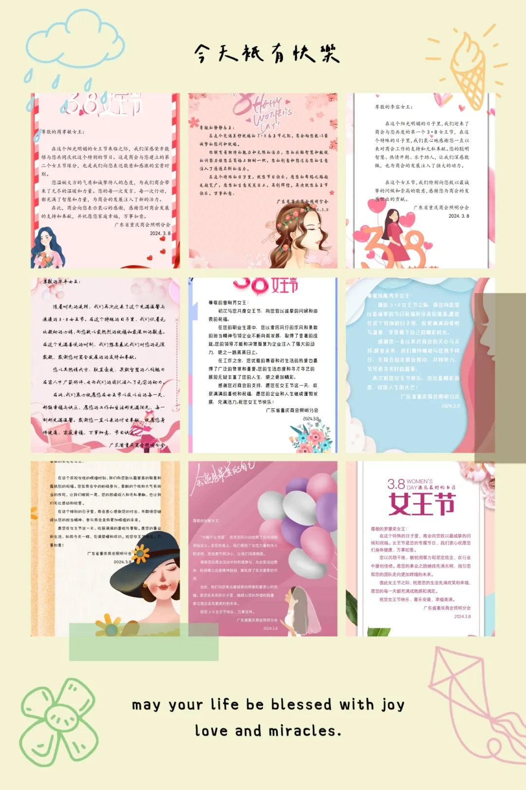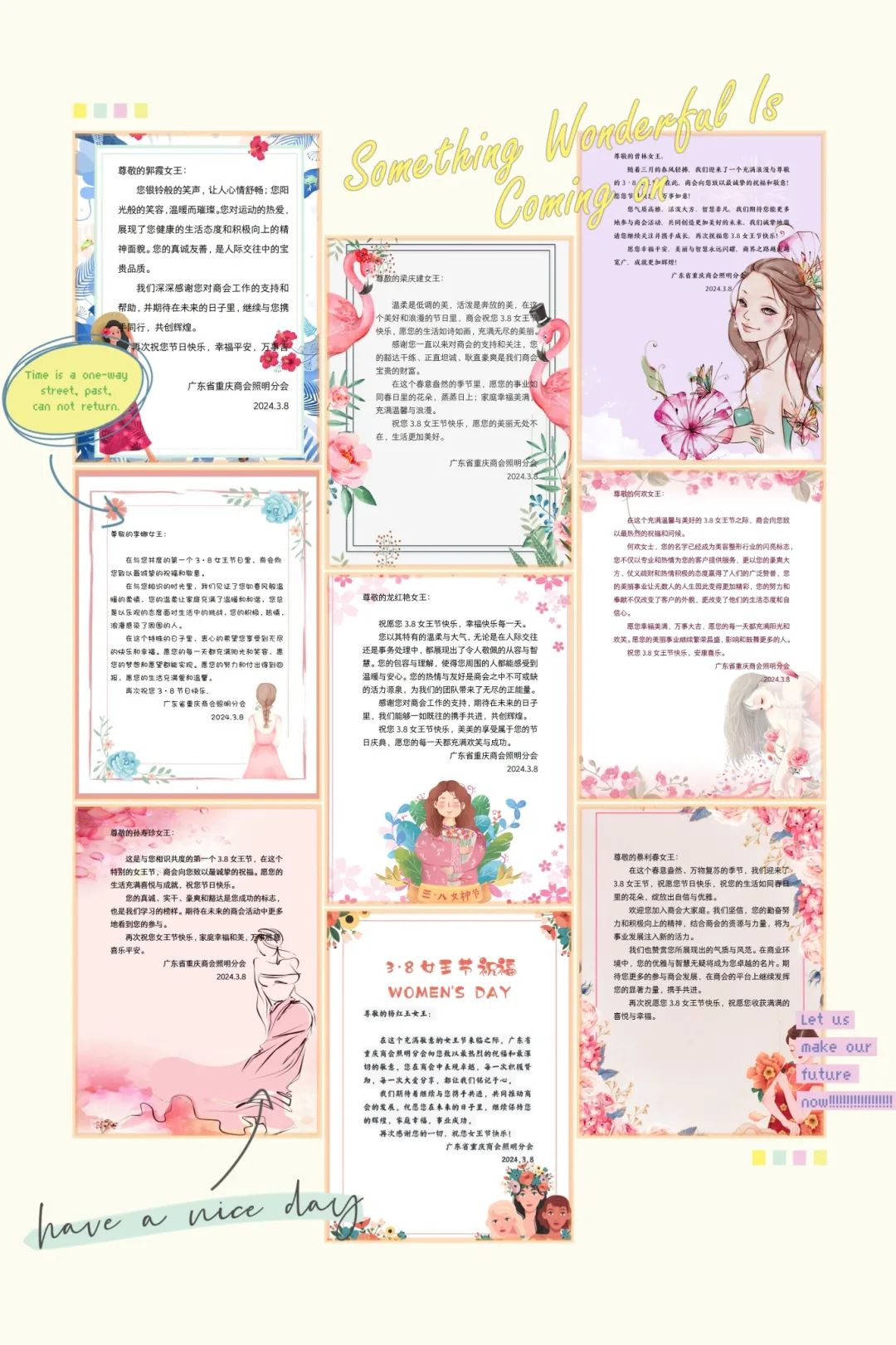在此,我们向所有女性会员和领导表示衷心的感谢,感谢她们对商会工作的支持和贡献。同时,我们也向所有女性朋友们致以最美好的祝愿,愿她们在未来的日子里继续发挥自己的力量,实现自我价值,收获成功和幸福。