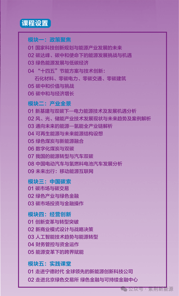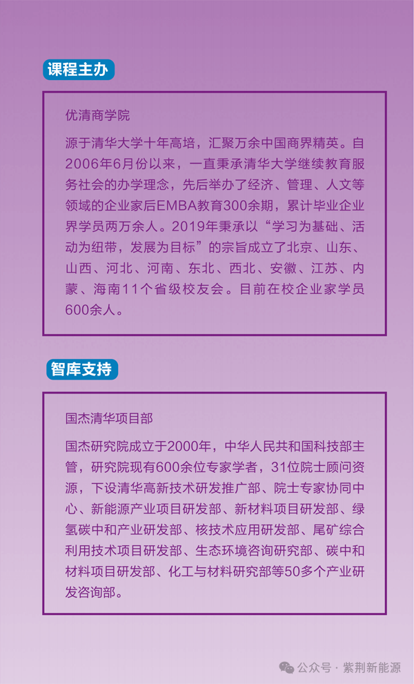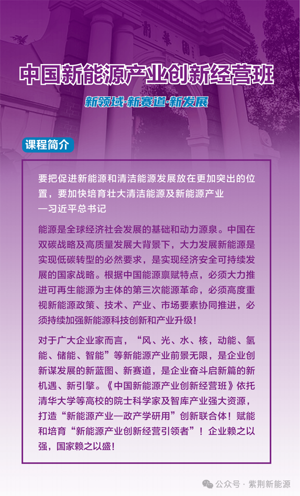 ⏯ 报名对象:新能源产业链上下游、规上企业负责人及机构投资人,每期限额录取30人,根据报名先后顺序、择优录取;