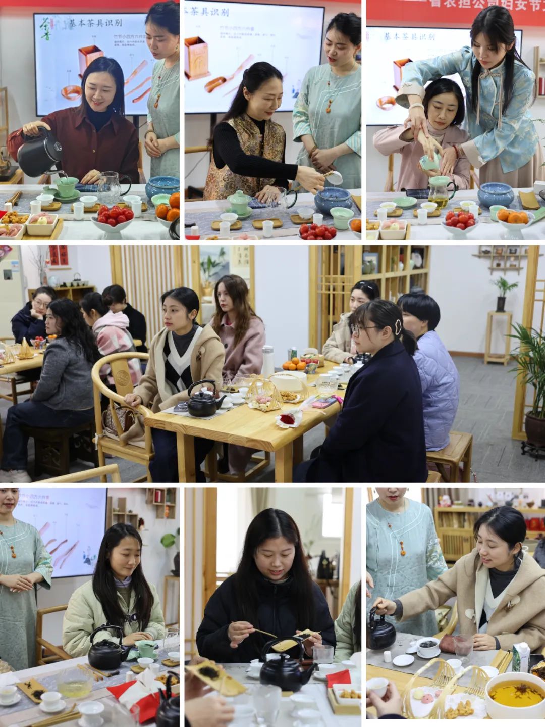 随后,在老师的指导下大家亲自动手操作,伴着古朴轻柔的乐声,体验备、洗、取、沏、端、品、斟等茶艺全流程,举手投足间,尽显从容优雅、恬静淡然。大家在茶与水的交融碰撞中,尽情享受茶艺的独特魅力。