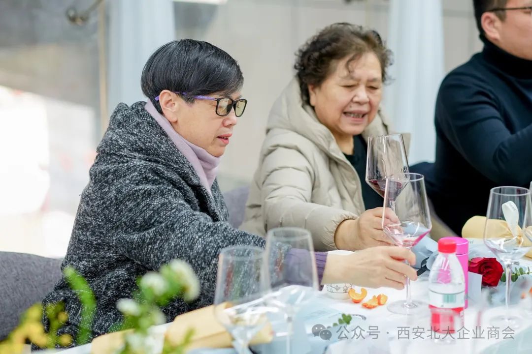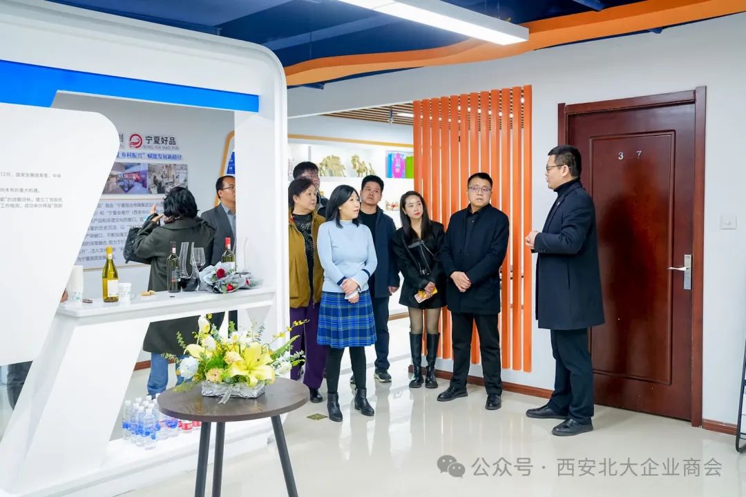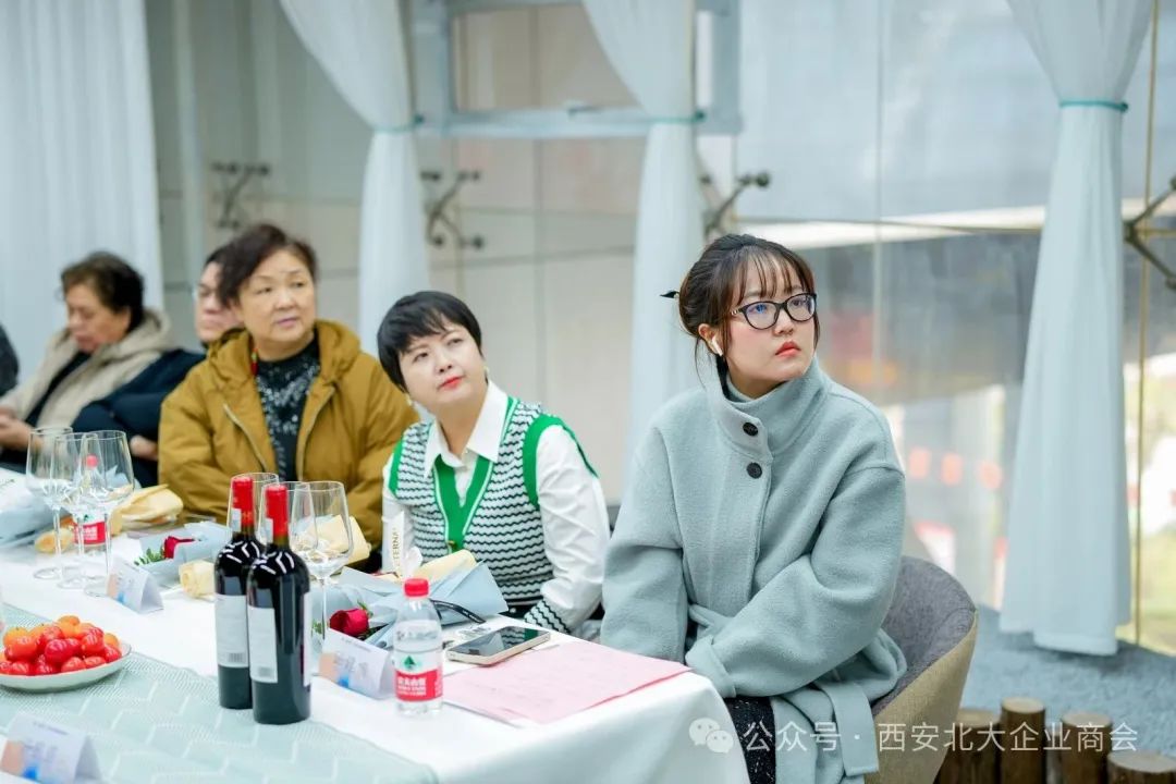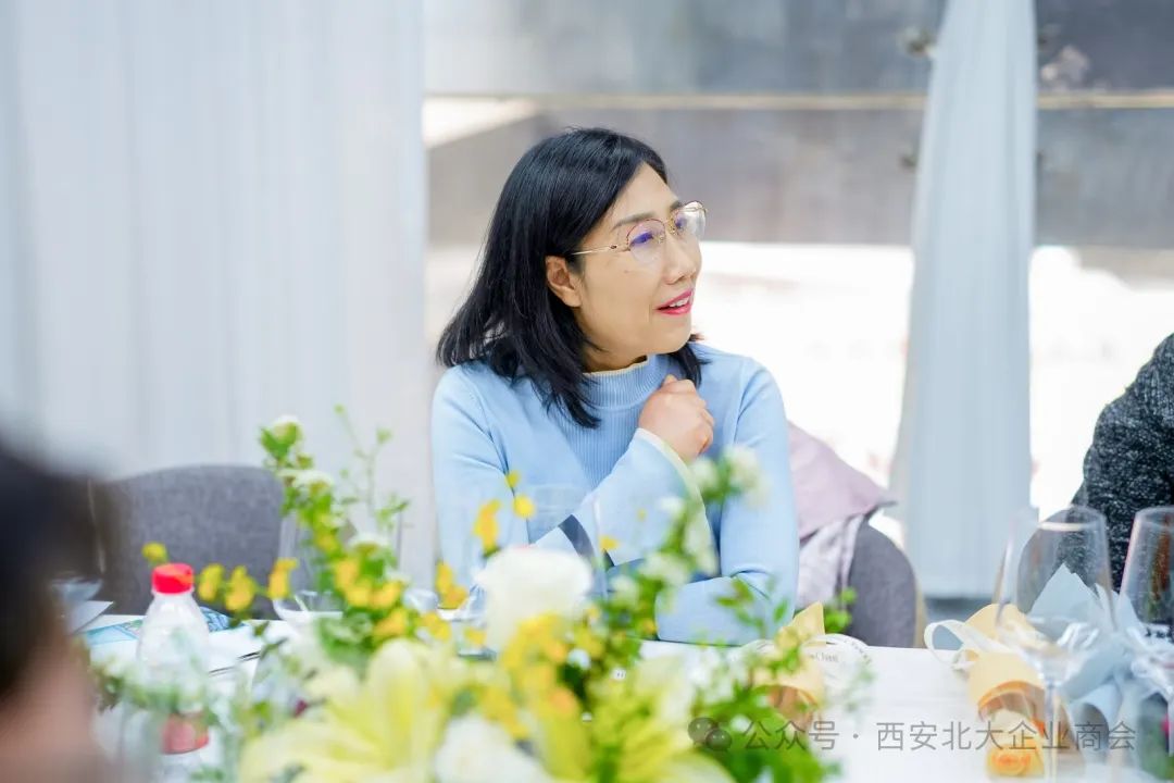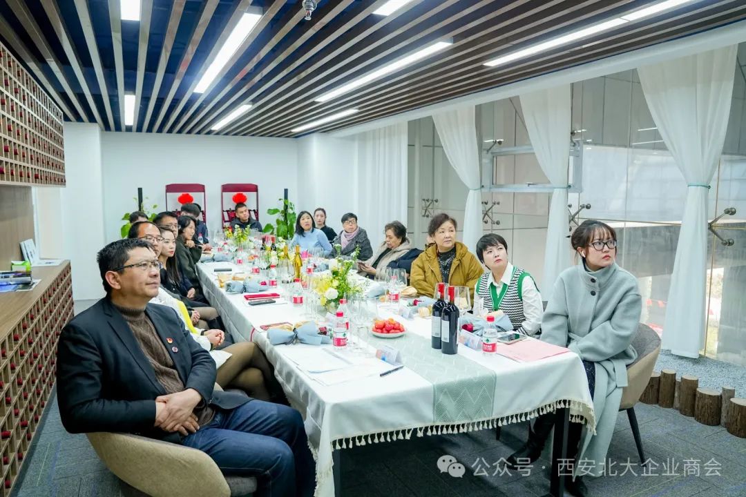 西安市北大助企商会顾委会主任孟连娣、顾问王玲、会长王海舟、商会监事长张春梅、秘书长许长盛、西安江河资源专修学院院长刘群等与商会女企业家、职能部门部长代表以及宁创时代董事长、宁夏会客厅(西安中心)理事长闫捷等20余人参加了本次活动。