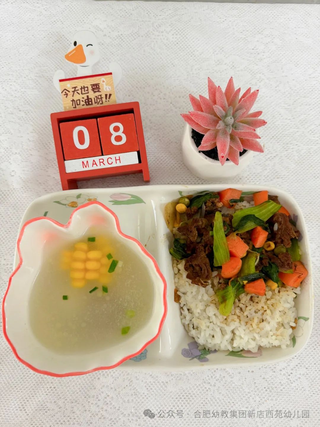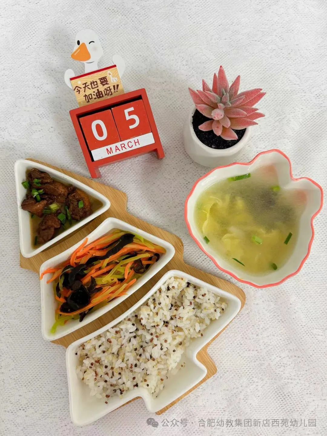 藜麦米饭、红烧鸭块、素炒三丝、三鲜菌菇汤