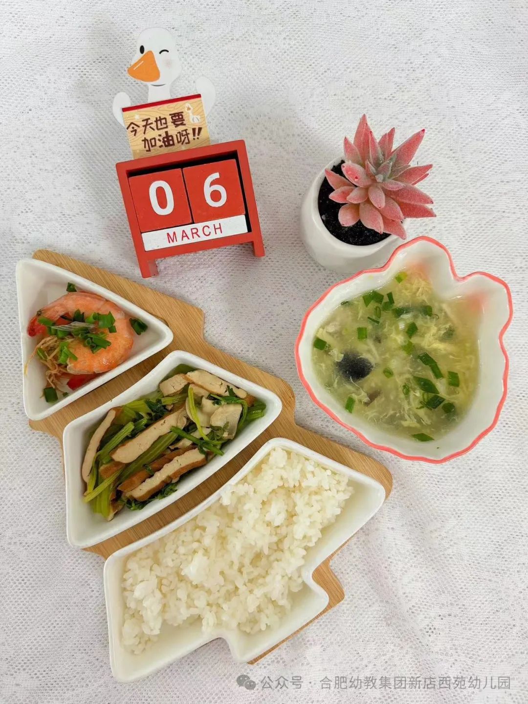 香米饭、蒜蓉大虾、芹菜口蘑炒香干、肉丝沙汤