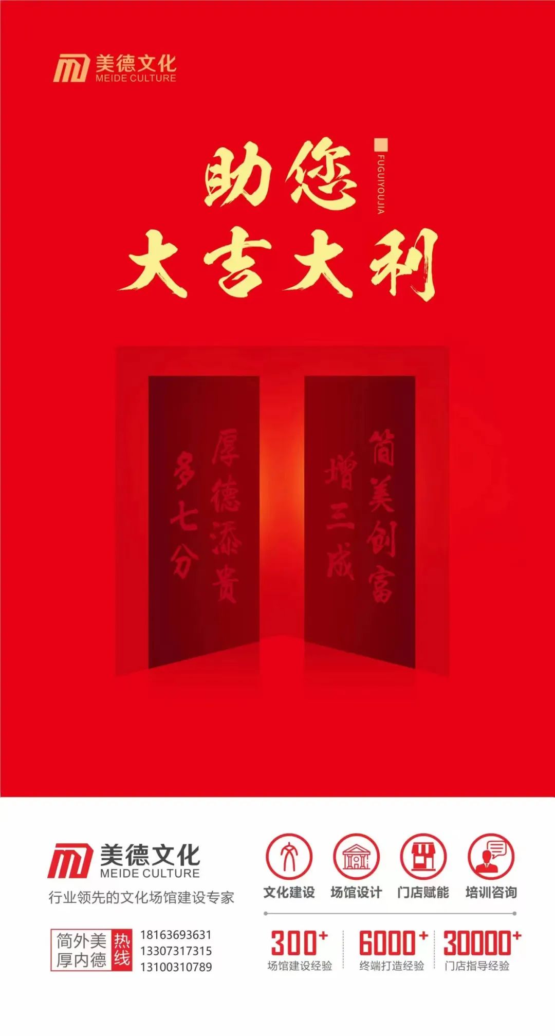 中国知名的文化与创意服务机构,在文化建设、场馆设计、门店赋能和培训咨询四大板块服务经验丰富是中国烟草、中国移动、中国中车三大著名企业的长期服务伙伴。秉承新时代"简美创富、厚德添贵"理念,为各企事业打造独特文化,以更成熟的思维方式呈现品牌形象和人文底蕴,助力单位成为更受欢迎的品牌。我们创建的不仅仅是品牌形象,更是推动文化自信的力量。