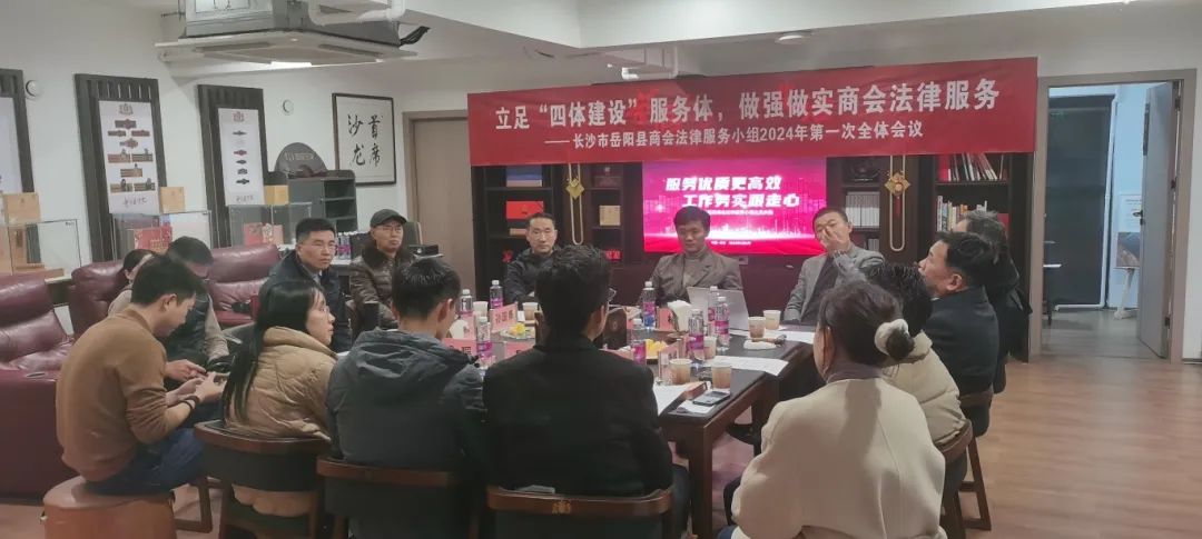 为响应商会“四体”建设发展战略,总结和计划法律服务小组工作,完善商会法律服务形式,提升商会法律服务质量,3月5日,长沙市岳阳县商会法律服务小组2024年第一次全体会议在国茄荟馆召开。湖南省高级人民法院原常务副院长刘庆富,益阳市中级人民法院原院长孙国勇,岳阳市中级人民法院环境资源庭原庭长程鹏应邀指导。商会会长万军辉,法律服务小组组长杨泽,顾问黄律,副组长童钧、余泽维、刘力、胡瑶,小组秘书长殷鹏,组员章棉水、童静、卢鑫、尹富、李博、彭凌风、张能期、许望出席本次会议。会议由理事冯衍焜承办。