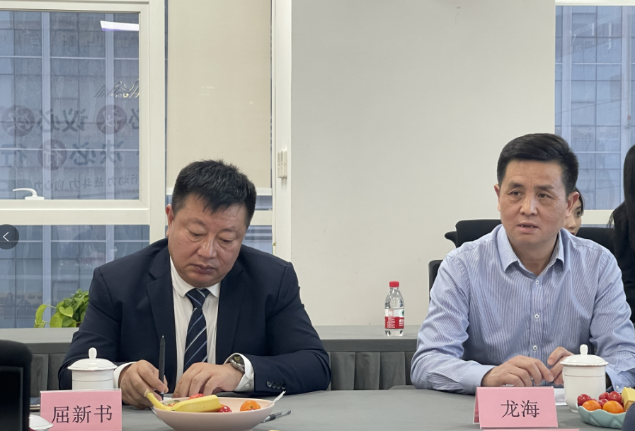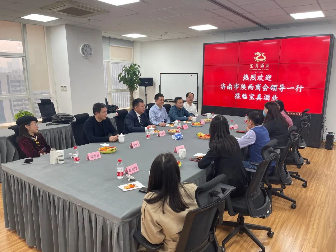 齐河考察结束,会长屈新书,轮值会长、常务副会长胡朋飞,常务副会长龙海,党支部书记、常务副会长李英武,副会长兼秘书长陈雪林,执行秘书长王新望、副会长赵媛、会员陈艳玲在宝真酒业副总经理彭俊元的带领下参观了位于历下区财富广场的企业办公场所并开展座谈会。