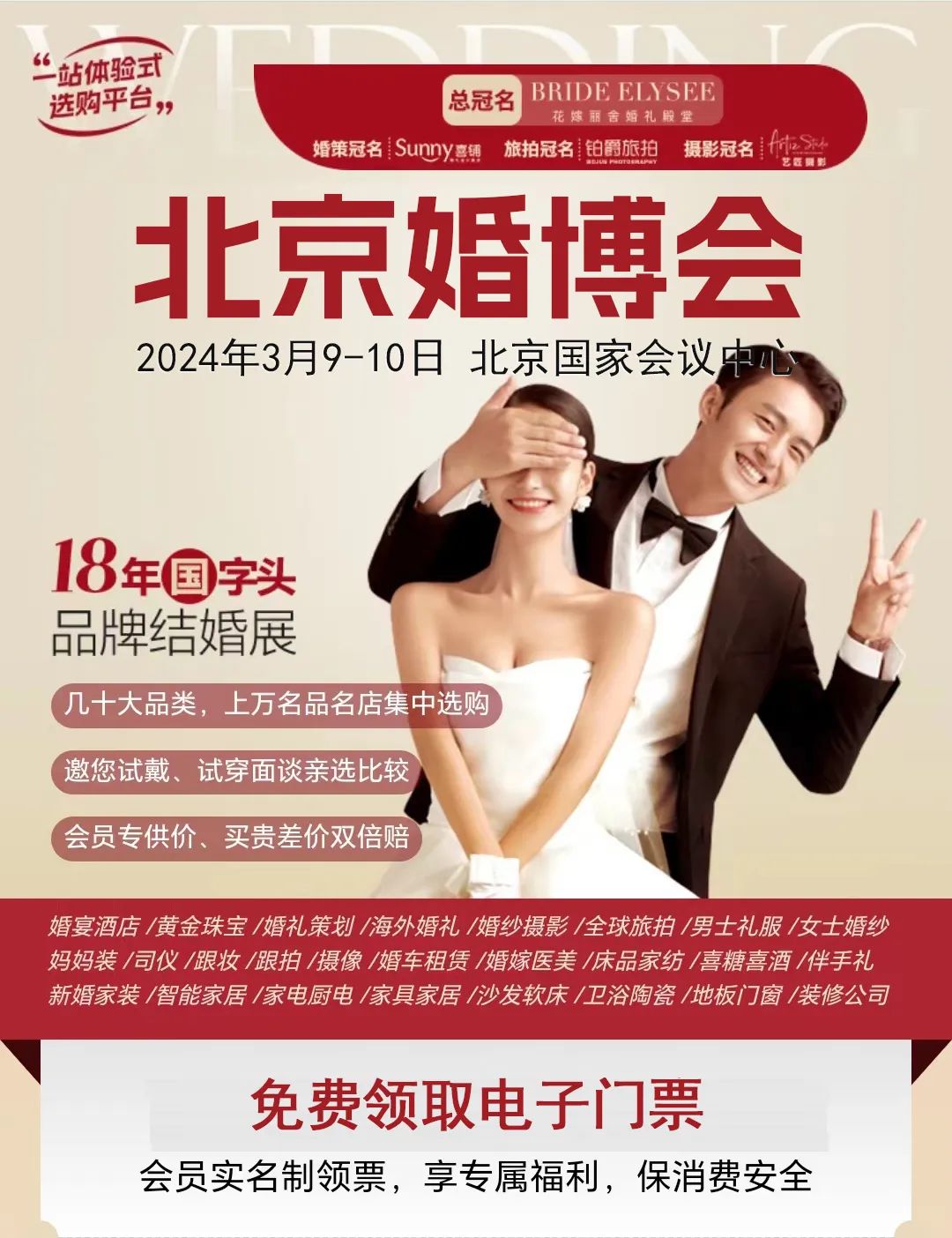 2024春季北京婚博会将于3月9-10日在北京国家会议中心举办,让您享受高性价比一站式结婚采购服务、轻松筹备您的品质婚礼。展出品类:婚纱摄影、婚宴酒店、婚嫁首饰、婚纱礼服、婚庆策划、婚礼用品、蜜月旅游等。