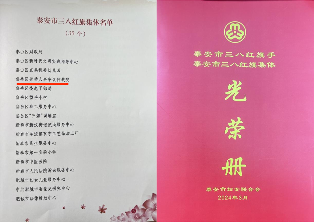 3月5日,泰安市妇女联合会组织召开泰安市纪念“三八”国际妇女节114周年大会,会上,岱岳区劳动人事争议仲裁院荣获“泰安市三八红旗集体”称号!(查看原链接)