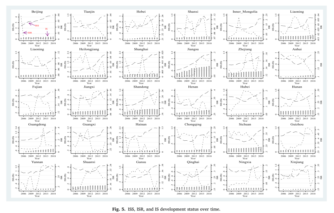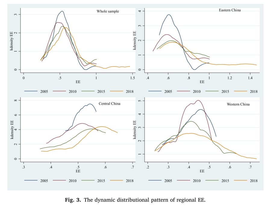 先前的研究充分证明了技术创新的作用,它在促进绿色发展方面功不可没。在此背景下,中国出台了多项前瞻性战略,包括《中国制造(2025)》和《创新驱动发展战略》,以积极转变粗放型经济发展模式,实现可持续发展。此外,在国家"十四五"规划中,技术创新,尤其是绿色技术创新,被进一步提升为促进中国经济低碳化发展的国家战略。尽管中国的技术创新绩效近年来有所进步,但仍需进一步提高。例如,Long等人阐述了中国的技术倡议偏重于生产,容易引发所谓的"反弹效应",从而抑制能源效率。