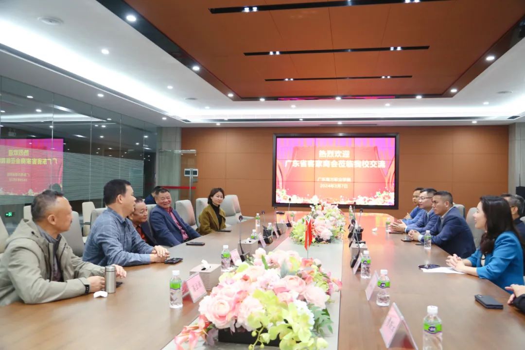 3月7日下午,广东省客家商会(以下简称“省客商”)常务副会长谢海峰,轮值理事钟武明,秘书长温智雅,东莞片区联络部副部长赖展林,会员王波、刘伟涛、温智涛、廖斯丰等一行到江门市梅州商会(以下简称“梅州商会”)旗下嘉应科创园,以及会长单位广东南方职业学院(以下简称“南方职院”)参观交流。