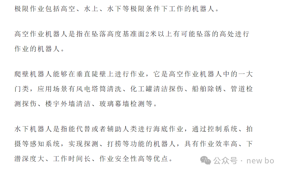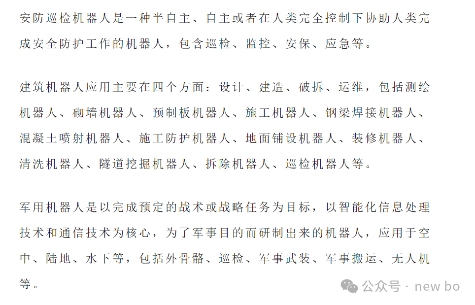 农业机器人指用于农林牧渔业领域各生产环节的机器人,能够进行土壤勘探、杂草控制、植物播种、环境监测、云播种、收获等,包括无人拖拉机、农业无人机、除草机器人、施肥机器人、采摘机器人、育苗机器人等。