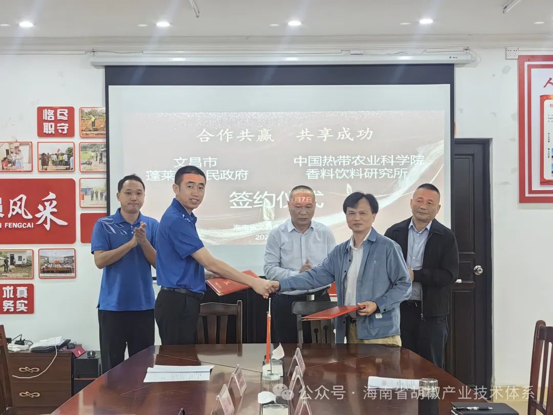 据悉,文昌市蓬莱镇于2023年获批海南省首批12个产业特色小镇之一,全镇种植胡椒5500余亩,是我省胡椒种植核心产区。香饮所长期在该镇开展技术示范与推广,前期已建立良好的合作关系。本次协议签订将以胡椒特色产业小镇为重要抓手,推动双方合作迈上新台阶,进一步实现科技与产业融合发展,全面促进产业提质增效,延伸产业链、提升价值链。