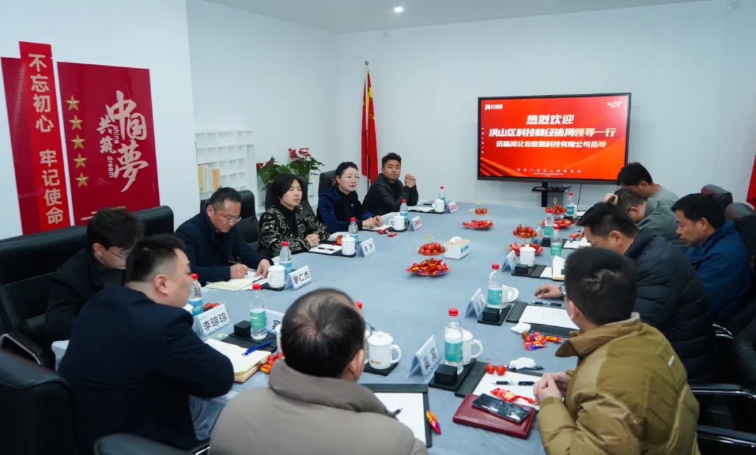 2月29日,由洪山区科技和经信局常务副局长刘功勋、洪山区科经局区域创新科科长李俊德带领的考察团队,莅临农鼎慧公司调研交流,双方就科技兴农、食品溯源等问题展开了深入探讨。