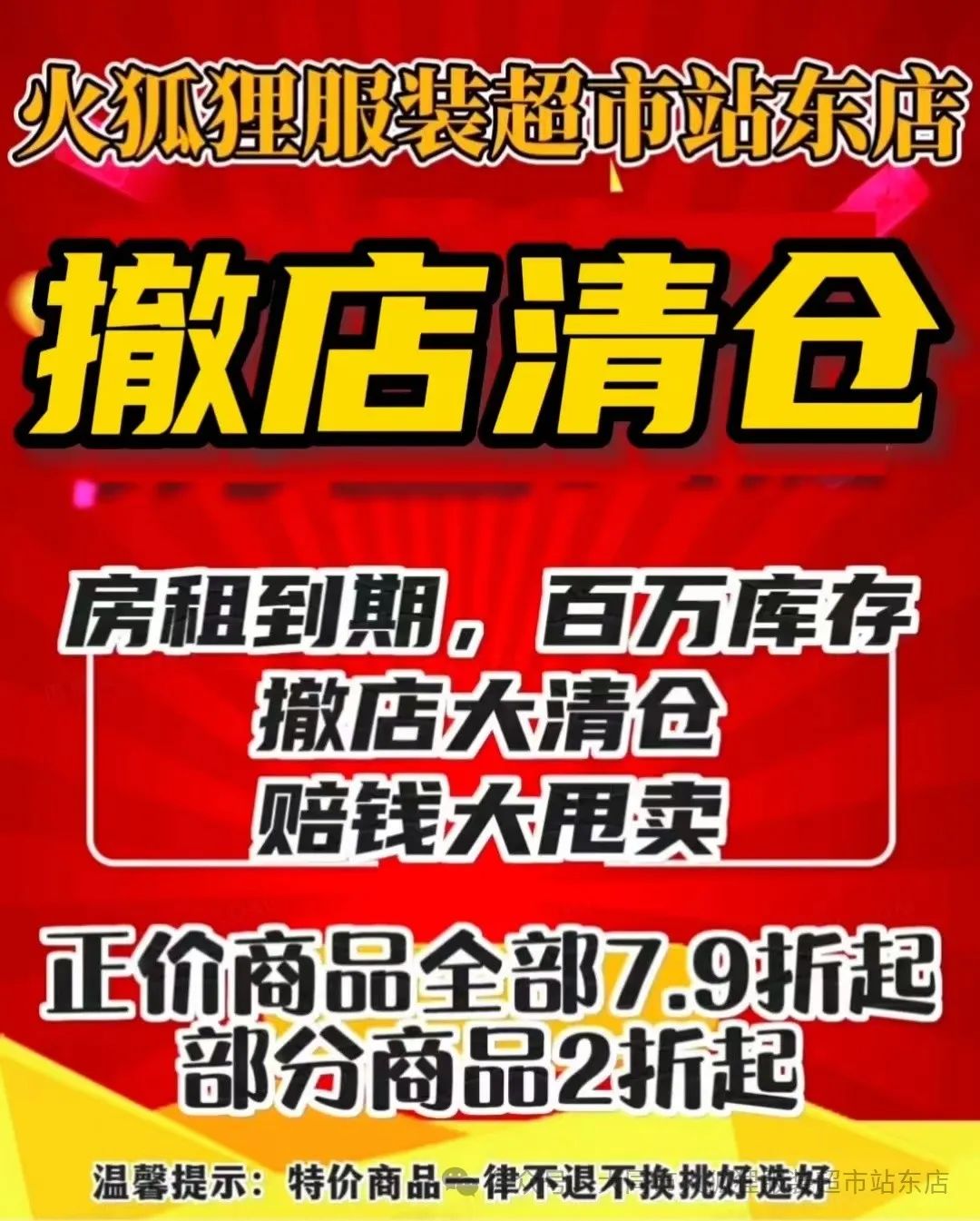 火狐狸服装超市站东店撤店清仓大甩卖