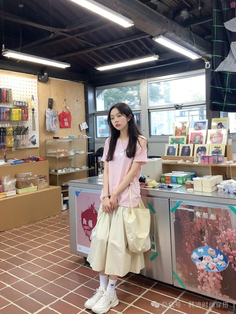 粉色T恤搭配黄色长裙,清新又甜美!粉色T恤显得她肤色白皙,青春洋溢;黄色是长裙简约大方,拉长了腿部线条。这种简单又不失风格的穿搭,正适合夏日闲逛或出游。