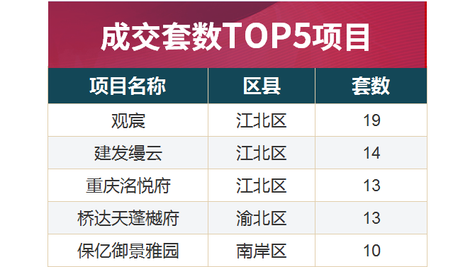 ● 项目:本周项目排名方面,观宸荣获成交套数榜周冠军。