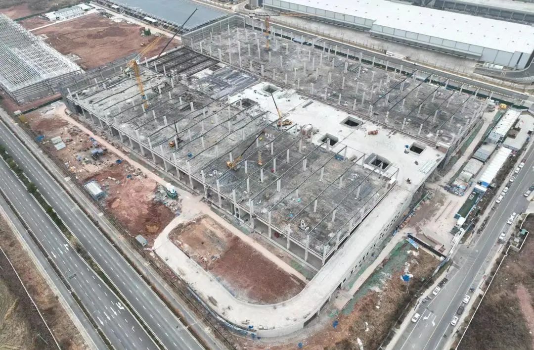 (1)主体结构:仓库完成83%, 汽车坡道及卸货平台完成;