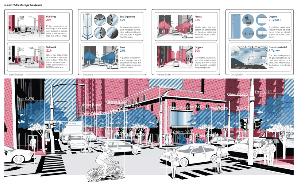 依据街景主观评价数据,提出了6分街景设计指导守则。在Gen老师和Xun老师的精心指导下完成,最终获得DLA2021最佳展板。