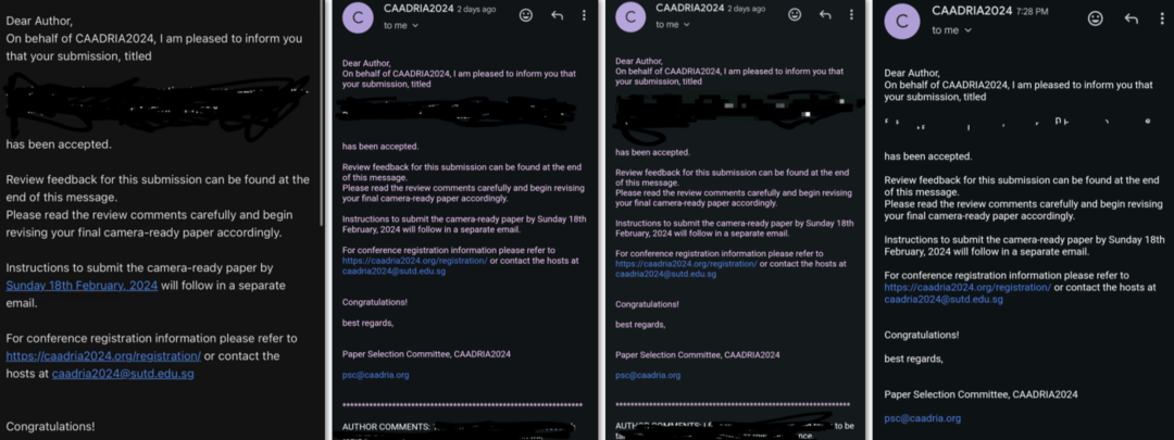 △ 23年CAADRIA会议论文录取通知邮件(来自2023年人工智能工作坊夏季班)
