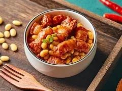 主菜:黄豆炖肉、荷兰豆炒山药、青菜、炒香菇