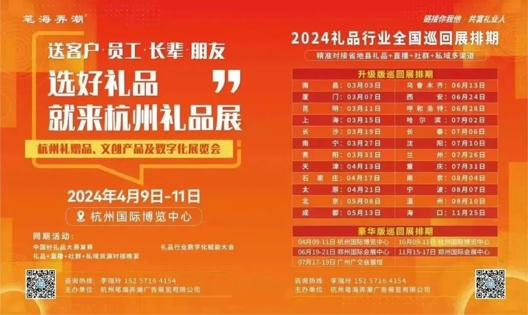 江西礼品展是2024年全国礼品行业巡回展的第一站,之后还将在厦门、昆明、上海、长沙、南宁、贵阳、北京等26个城市举办,展会同期还有中国好礼品大赛、大赛评委答谢晚宴、礼业论坛、礼品行业资源对接晚宴等活动,欢迎报名参观或参展!