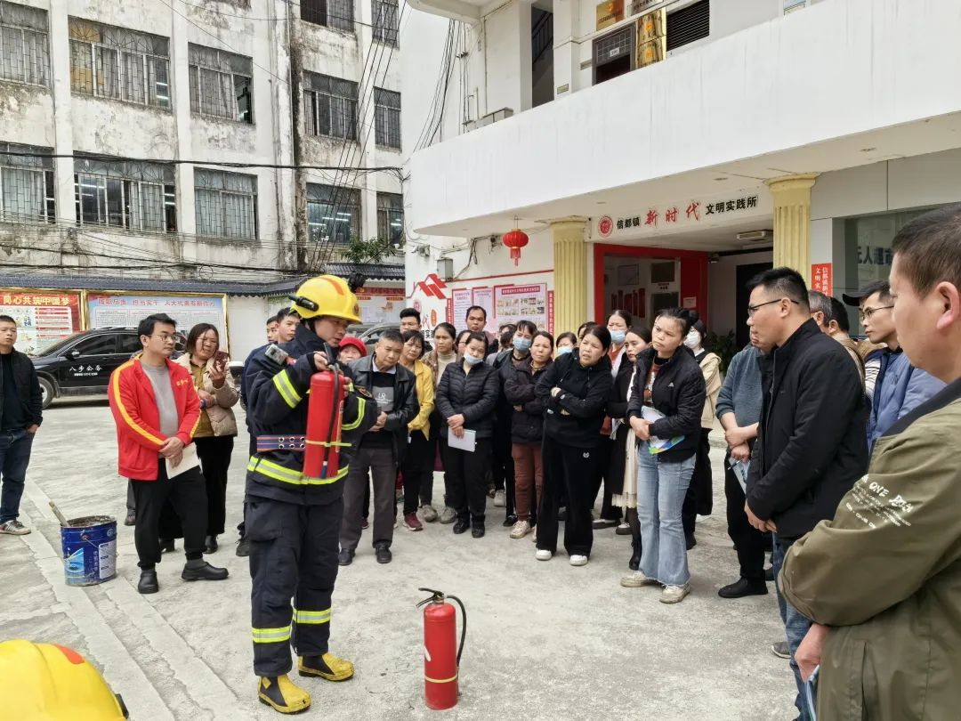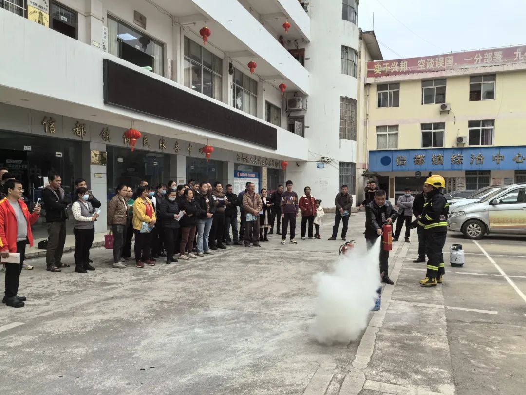 会后信都消防救援站工作人员在政府大院内开展消防演练,详细介绍了如何正确使用灭火器,并演示灭火器的正确使用方式,现场指导居民进行实际操作。