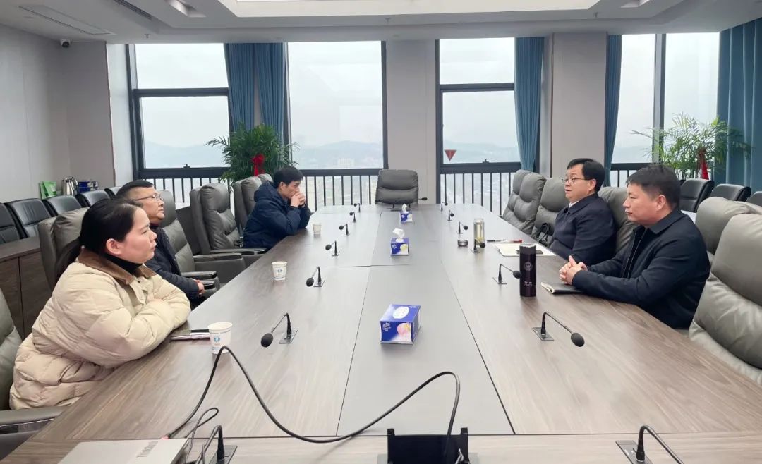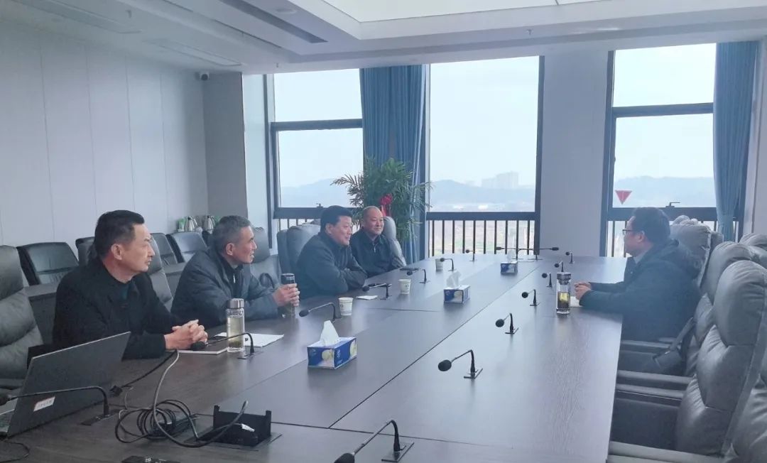 集团副总经理汪凯与黄冈东源电业集团有限公司罗田分公司、中国电建集团中南勘测设计研究院有限公司领导一行研究平坦原抽水蓄能电站移民项目建设事宜,城乡投资公司总经理程得元及相关人员参加。