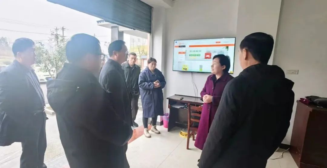 01.县委书记郝爱芳到骆驼坳镇学堂村网络供销社检查指导“冈好购”直营店建设工作,集团总经理康林涛现场介绍有关情况。