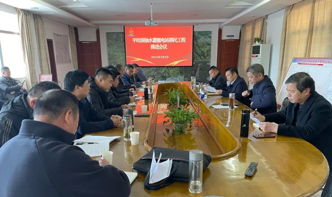 平坦原抽水蓄能电站项目前线指挥部指挥长陈世龙、副指挥长胡暑平组织召开移民工程推进会议,城乡投资公司总经理程得元参加。