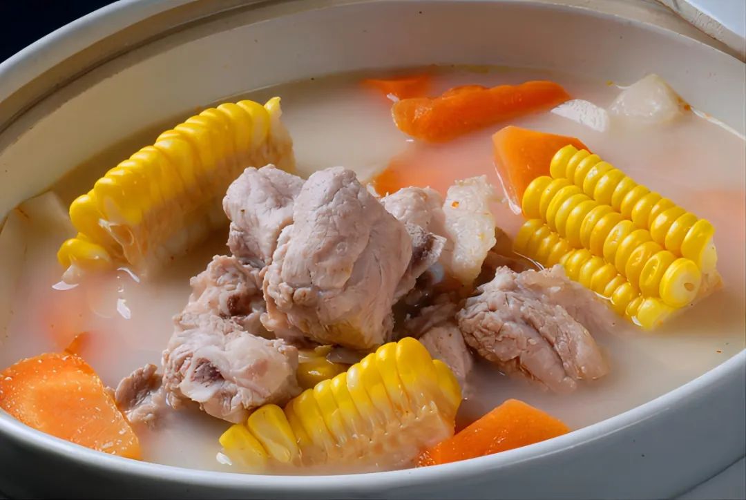 3.玉米排骨汤(甜玉米:60克 精仔排:35克 胡萝卜:5.5克)
