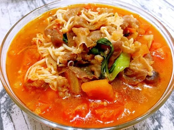 3.番茄肥牛汤(西红柿:62克 肥牛卷:35克)