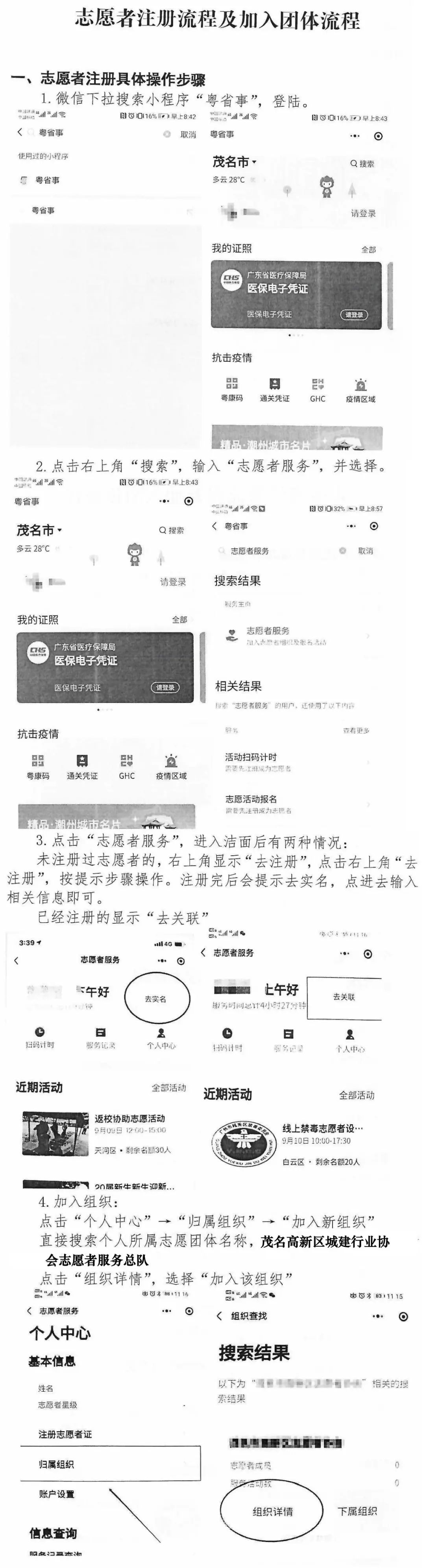 2)已经注册的显示“去关联”,关联:茂名高新区城建行业协会志愿者服务总队