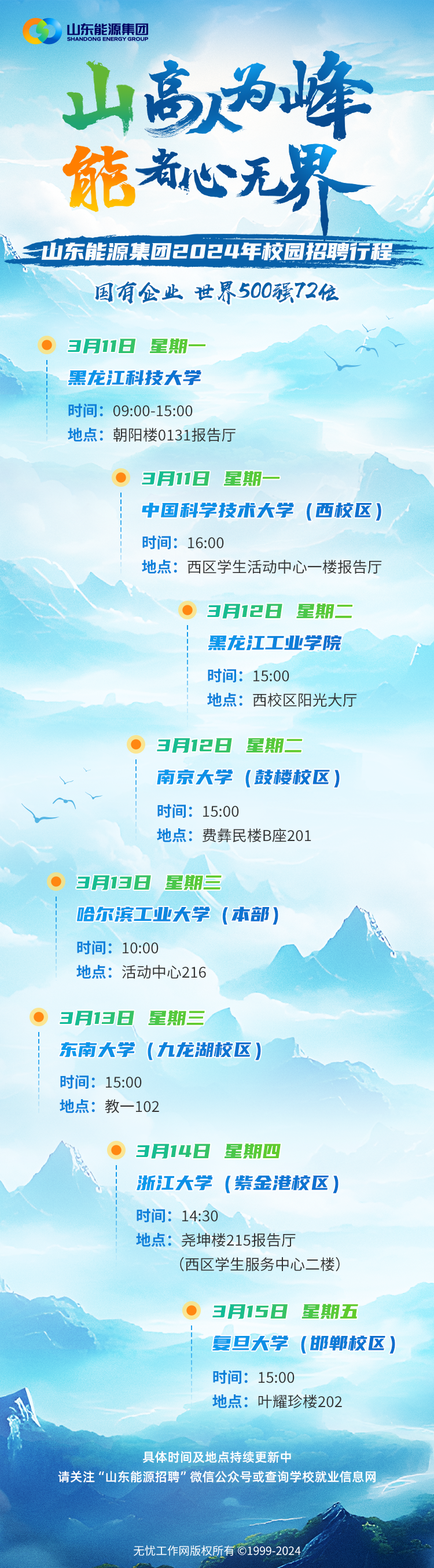 春招行程 | 山东能源集团3月11日-15日校园招聘宣讲行程来了~
