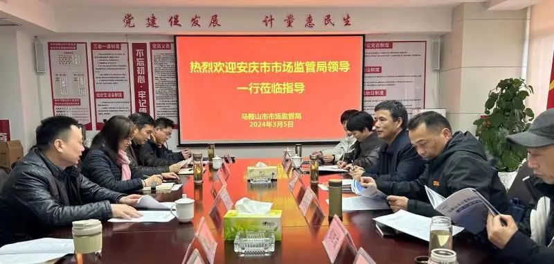 3月5日,安庆市市场监管局四级调研员宋杰银率财务审计科、计量科、计量所负责同志等一行9人赴我局就筹建产业计量测试中心的成功经验、创新举措进行考察交流。市局党组成员、副局长张军出席并讲话。市局财务审计科、计量科、计量所负责人等陪同考察。