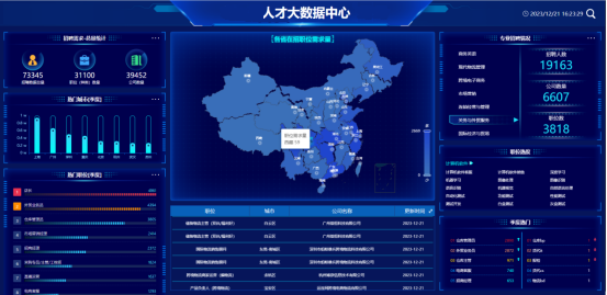 足下行业人才需求与大数据分析平台利用人工智能大数据技术,实时采集全国企业的用人需求(岗位可以根据学校专业进行配置优化),通过数据标注、数据处理、数据分析、数据展示等手段,形成实时的行业需求。其核心作用有以下两点: