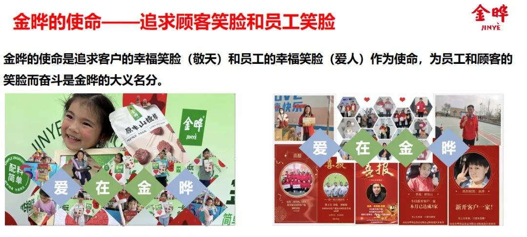 在金晔,你会发现公司把员工幸福和用户幸福放在一起。李金伦觉得不维护好员工,其实价值无法传导到用户。为此,金晔食品组织成立了金晔志工团,将全公司分为12个团,每个团30-40人,围绕爱和幸福两个主题展开相应的工作。