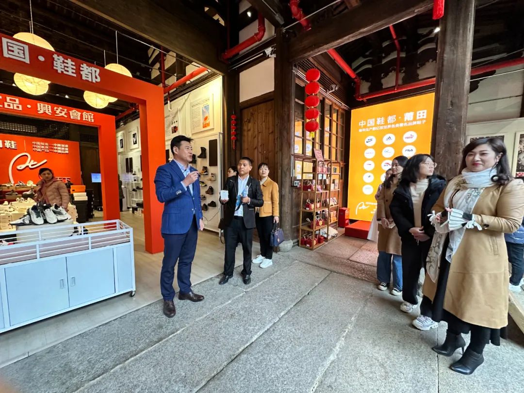 随后前往参观“莆田优品”展厅。在这里,琳琅满目的鞋服、食品、工艺美术品及文创产品等吸引了大家的目光。吴秘书长如数家珍地介绍了展品的特色和背后的故事,来宾们对这些展品表现出了浓厚的兴趣,纷纷驻足观赏、询问详情。