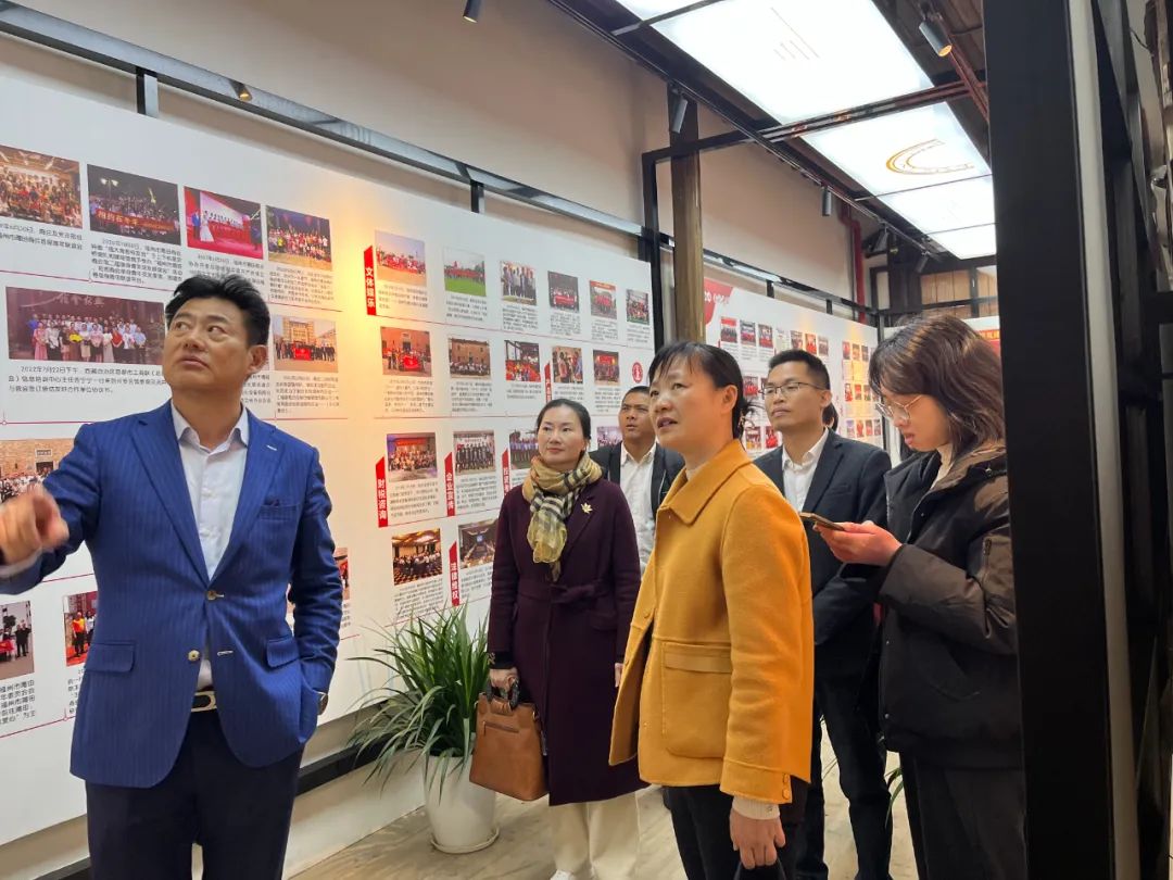 最后,在第五进的宣传栏向来宾们详细介绍了商会的组织架构、领导班子成员、党建工作及会务建设情况。他着重介绍了商会在服务会员、推动经贸合作和文化交流等方面所做的努力和取得的成果。来宾们对商会的规范运作和丰硕成果表示了由衷的赞赏。