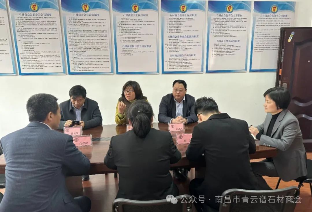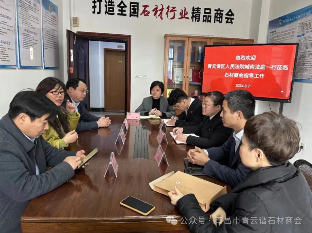 3月7日下午,值此国际“三八”妇女节之际,青云谱区人民法院城南法庭女法官何晓洁一行,来到南昌市青云谱石材商会走访调研,听取女会员企业的诉讼请求,为会员企业的商事活动提供法律援助。商会法律顾问单位秦风律师事务所负责人危宗保、吴律师,石材商会会长徐红坚,监事长李惠刚,常务副会长兼秘书长徐明荣参加。