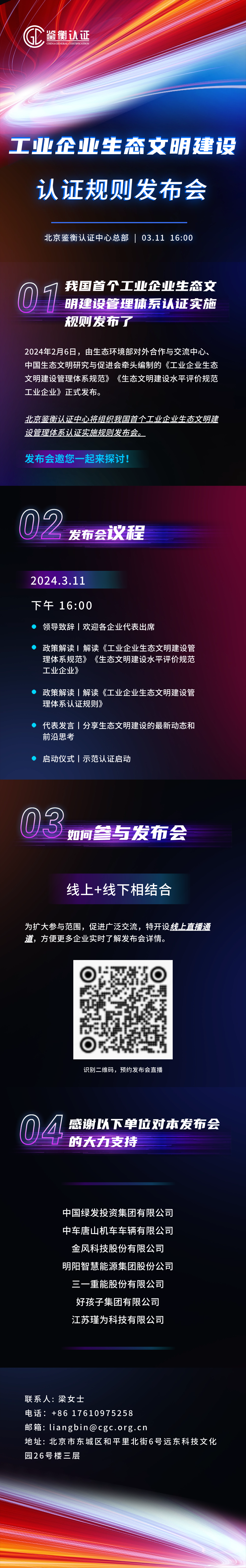 3月11日下午4:00,直播见 | 工业企业生态文明建设管理体系认证规则发布会即将启动