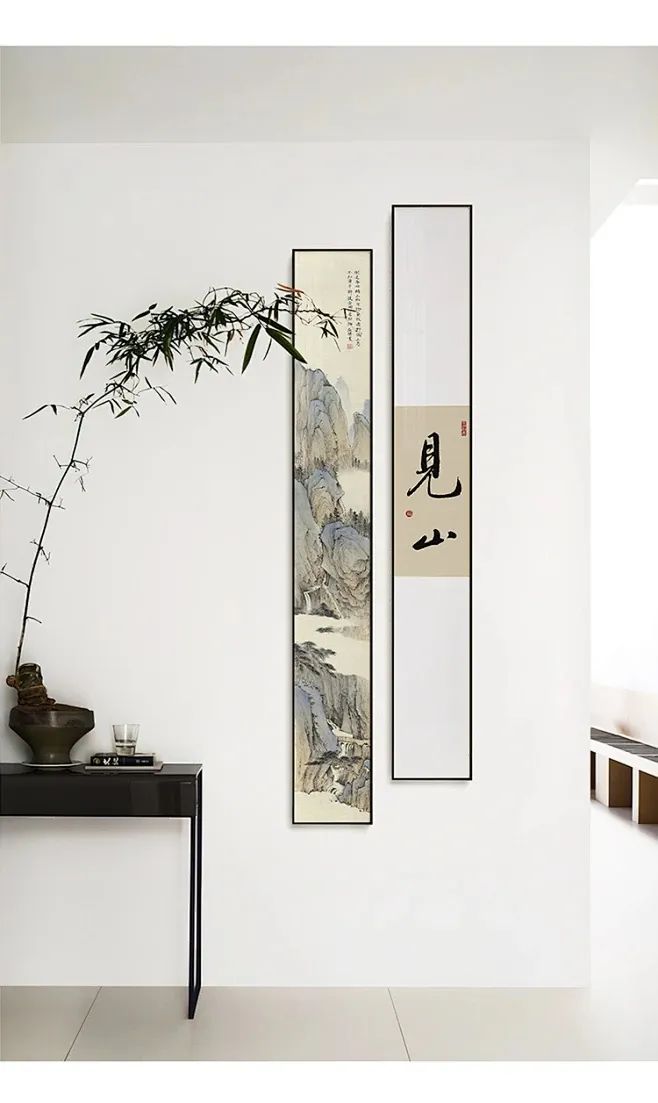 我国古代就有“坐卧高堂,究尽泉壑”之说。硬装再怎么设计,还是那几个功能间,四白落地,显得太单调了。挂上名家精美字画,补壁点缀、欣赏艺术之美的同时,以求修身明理。更有提振家居气色,调节家庭风水的说法(此关信仰,相信则信)。