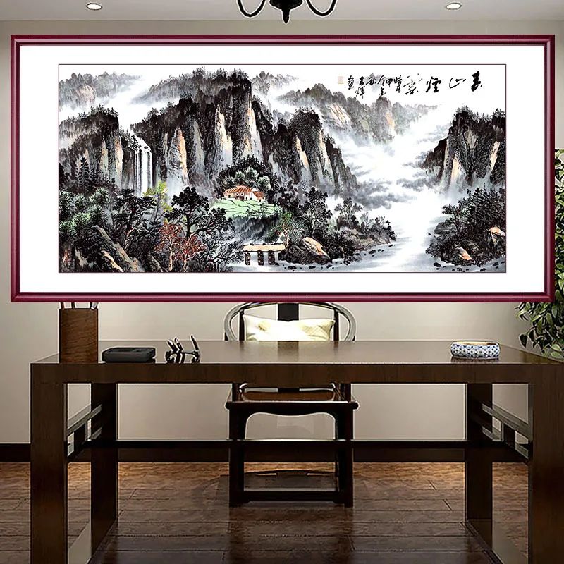 客厅配画一般要求稳重,大气,山水画就是首选。