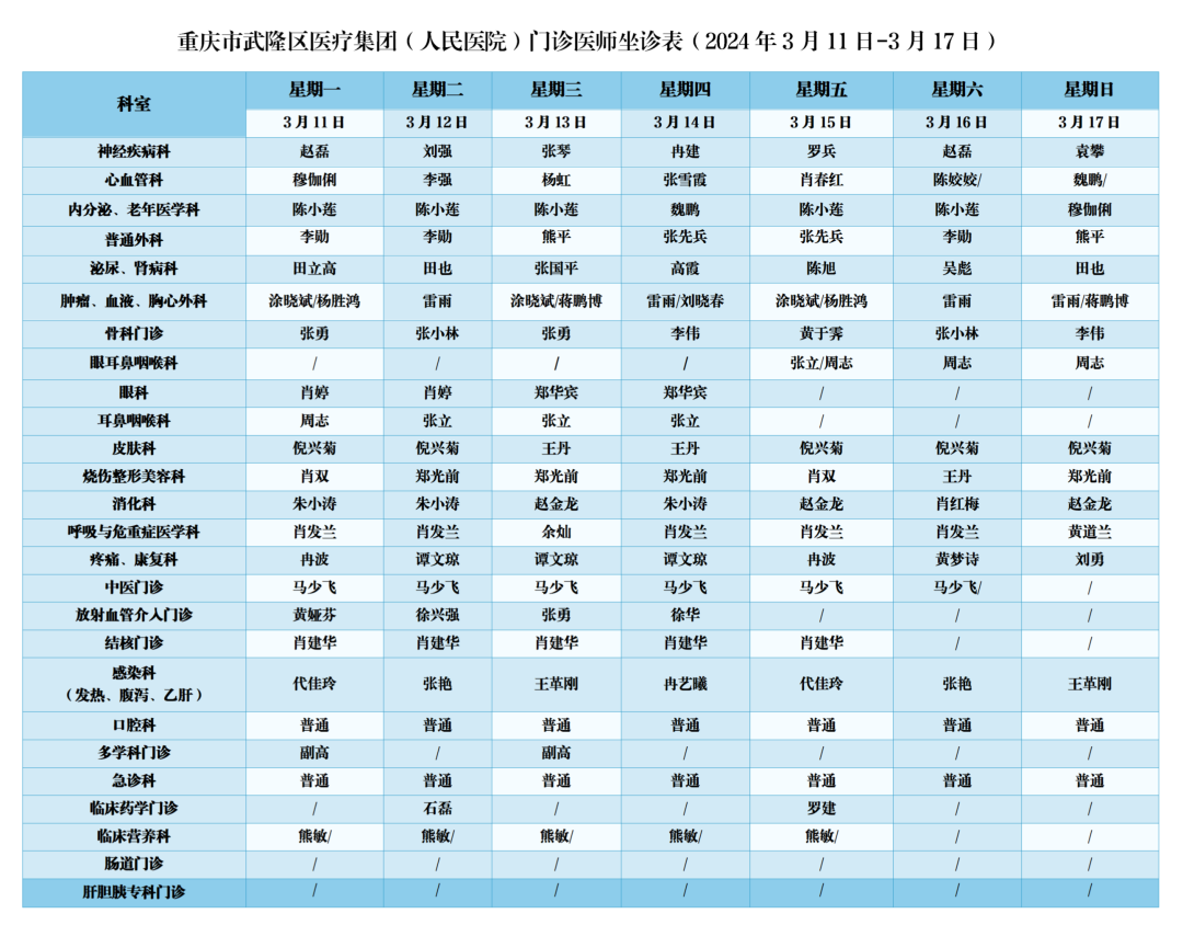 为更好地服务患者,方便患者就医,现将3月11日一3月17日门诊医生安排公布如下: