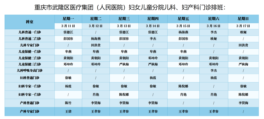 自2024年3月6日起,武隆区人民医院妇产科、儿科将全面搬迁至妇女儿童分院,需要就诊的广大妇女儿童请前往新址。