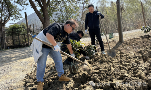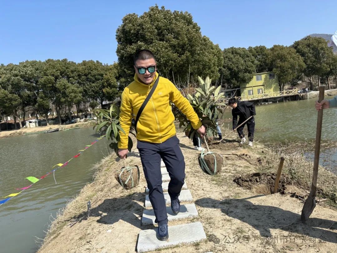 3月10日, 阳春三月,春风和煦,草长莺飞,在第45个植树节来临之际,苏州市辽宁商会与苏州市宁夏商会共同组织第四届公益植树活动,此次活动旨在推动绿色发展理念,增强商会会员的环保意识,同时促进两家商会间合作关系的进一步巩固和深化。苏州市辽宁商会监事长邹积川,常务副会长、党支部书记杨立才,秘书长金花,女企专委会副秘书长朴春婷,苏州市宁夏商会秘书长祁芳利等50多位爱心会员及家人参加活动。